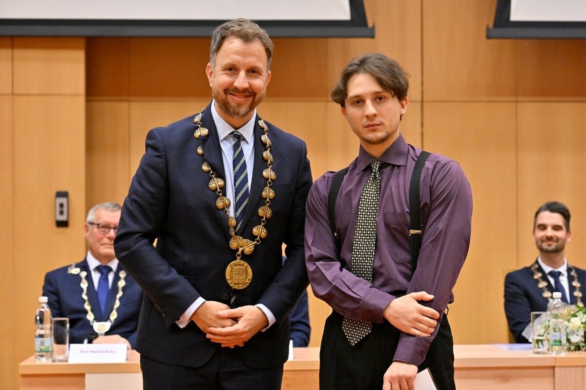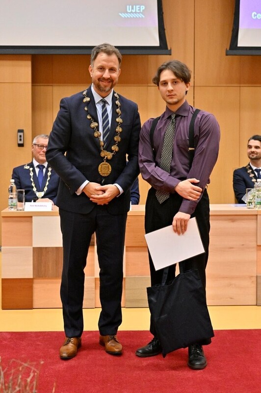 Předání stipendia starosty MO Ústí n. L. - město studentu UJEP p. Bc. Matěji Krobovi